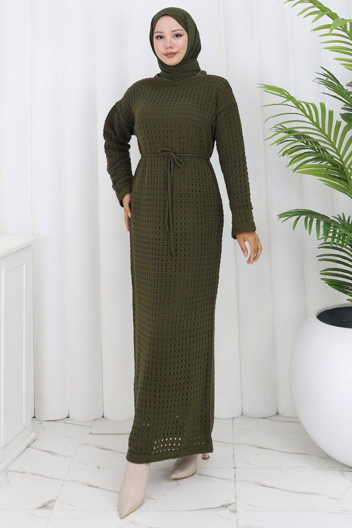 Astarlı Ajurlu Elbise Haki HM2839 (2839)