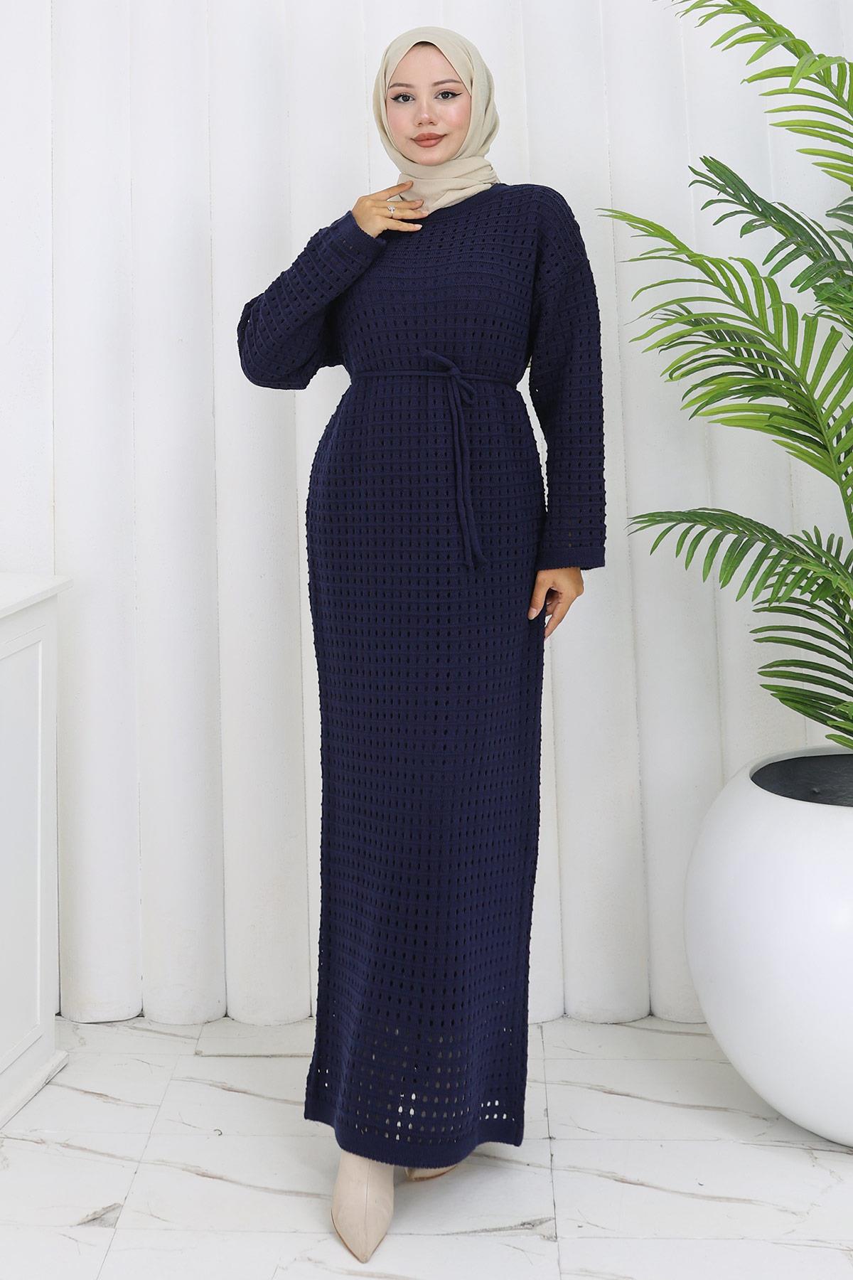 Astarlı Ajurlu Elbise Lacivert HM2839 (2839)