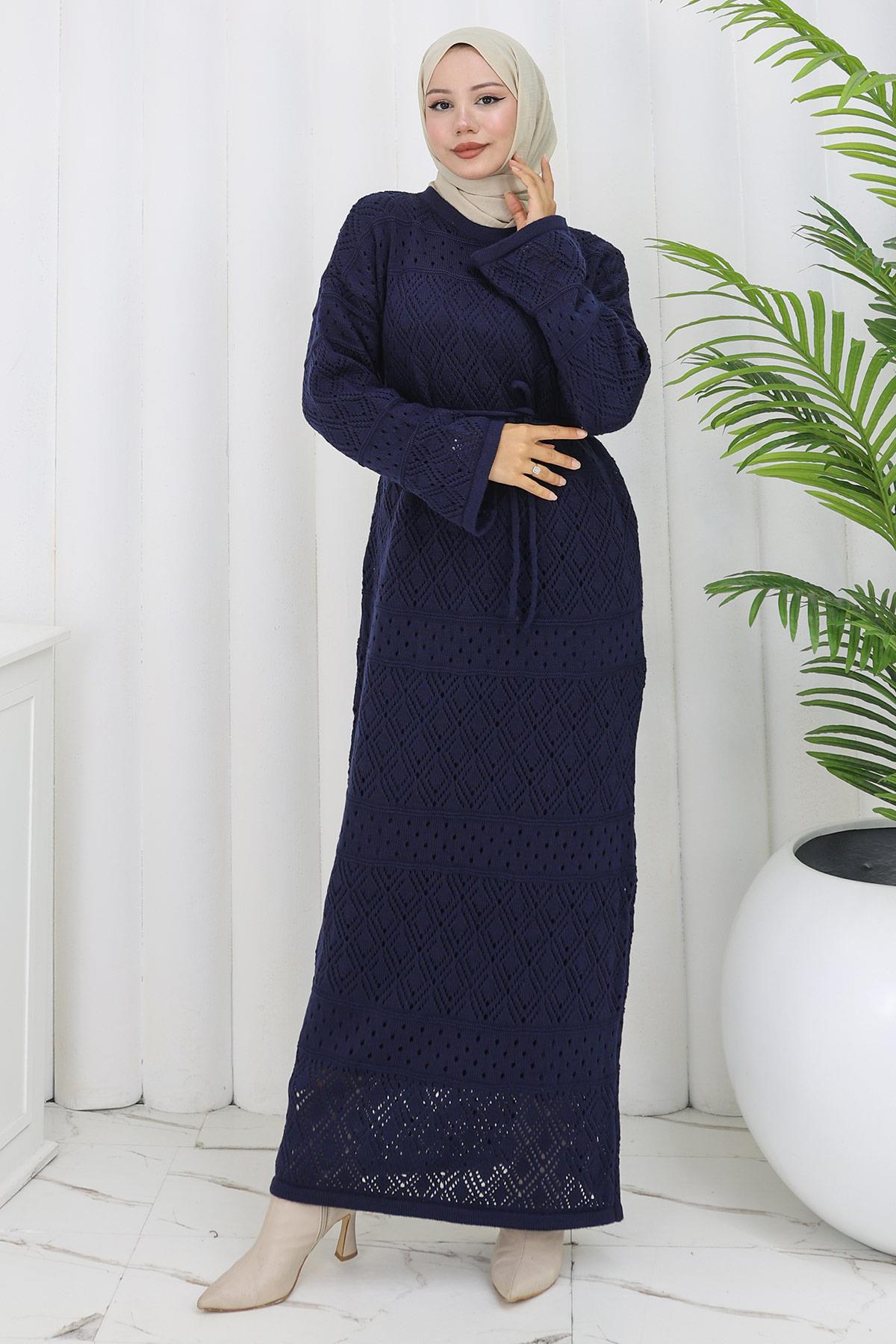 Astarlı Bağcıklı Ajurlu Elbise Lacivert HM2840 (2840)