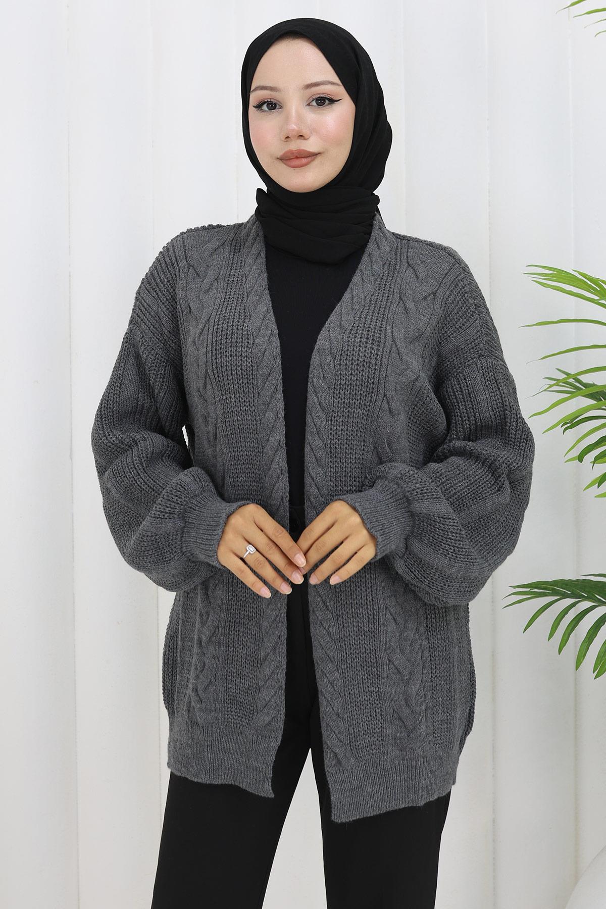 Balon Kol Saç Örgü Desen Triko Hırka Füme HM2835 (2835)