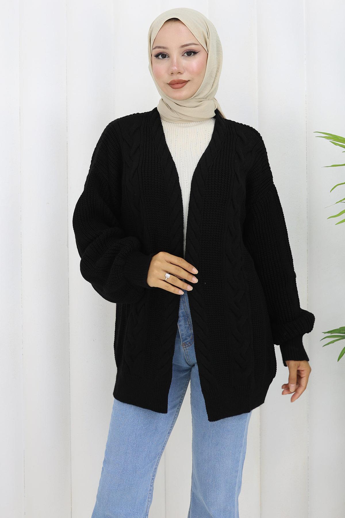 Balon Kol Saç Örgü Desen Triko Hırka Siyah HM2835 (2835)