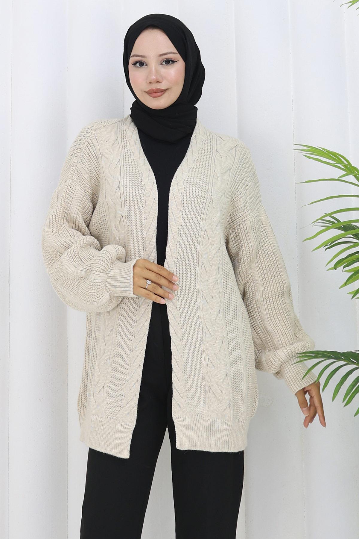 Balon Kol Saç Örgü Desen Triko Hırka Taş HM2835 Özellikleri