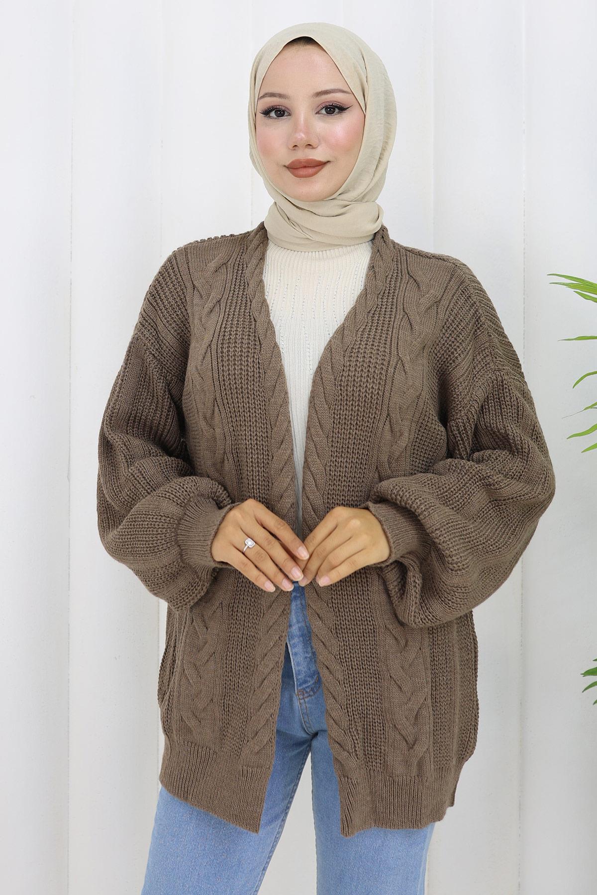 Balon Kol Saç Örgü Desen Triko Hırka Vizon HM2835 (2835)