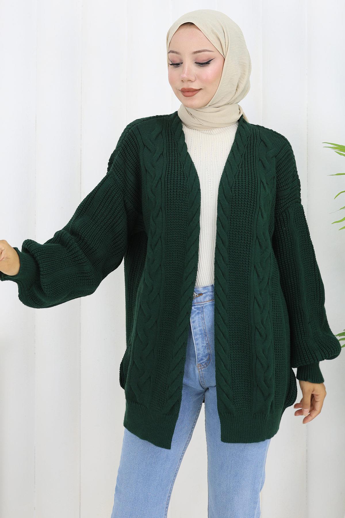 Balon Kol Saç Örgü Desen Triko Hırka Zümrüt HM2835 (2835)