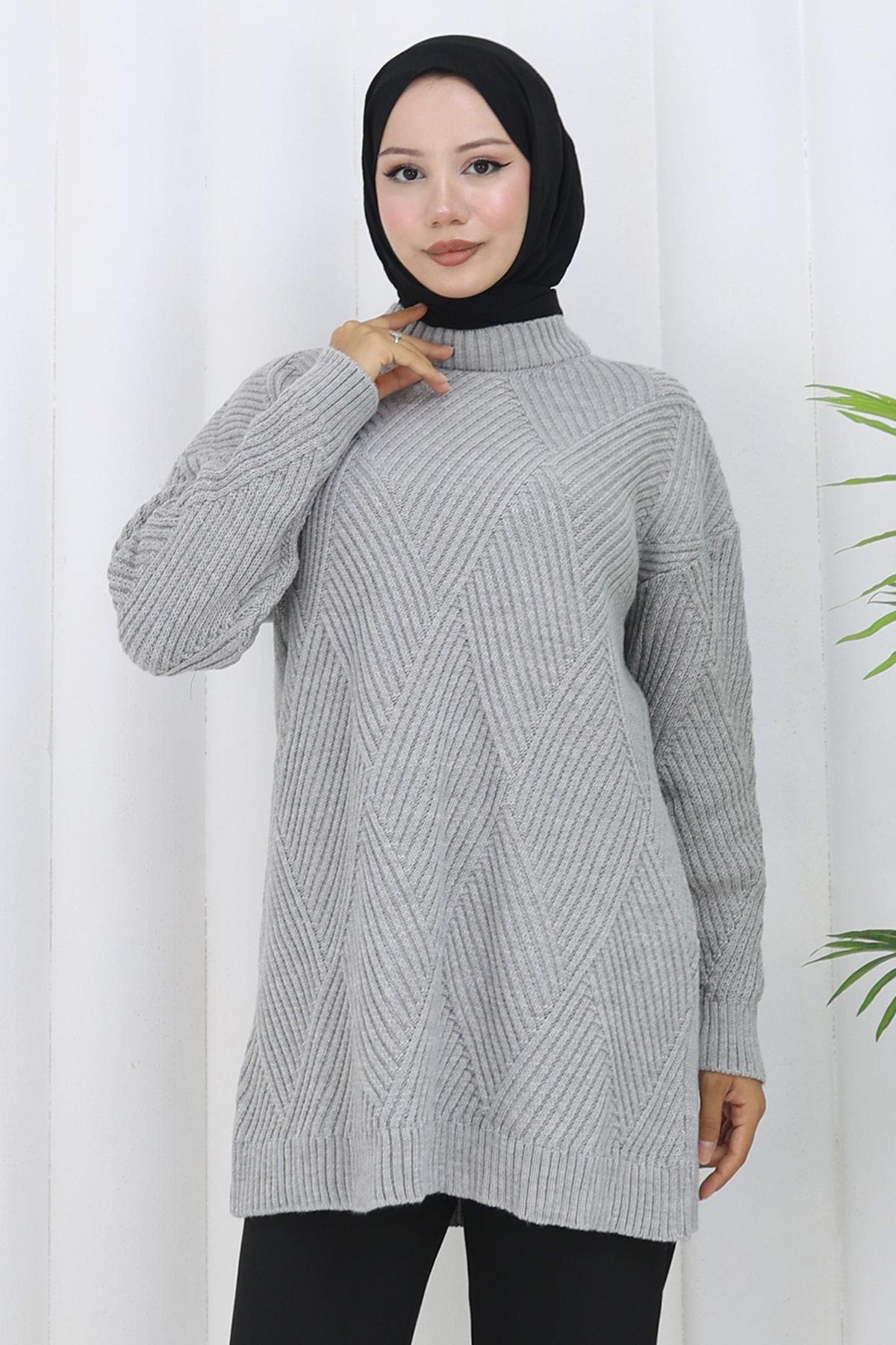 Bisiklet Yaka Baklava Desen Kazak Gri HM2836 (2836)