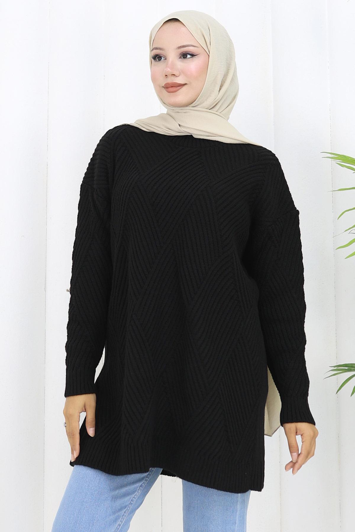 Bisiklet Yaka Baklava Desen Kazak Siyah HM2836 (2836)