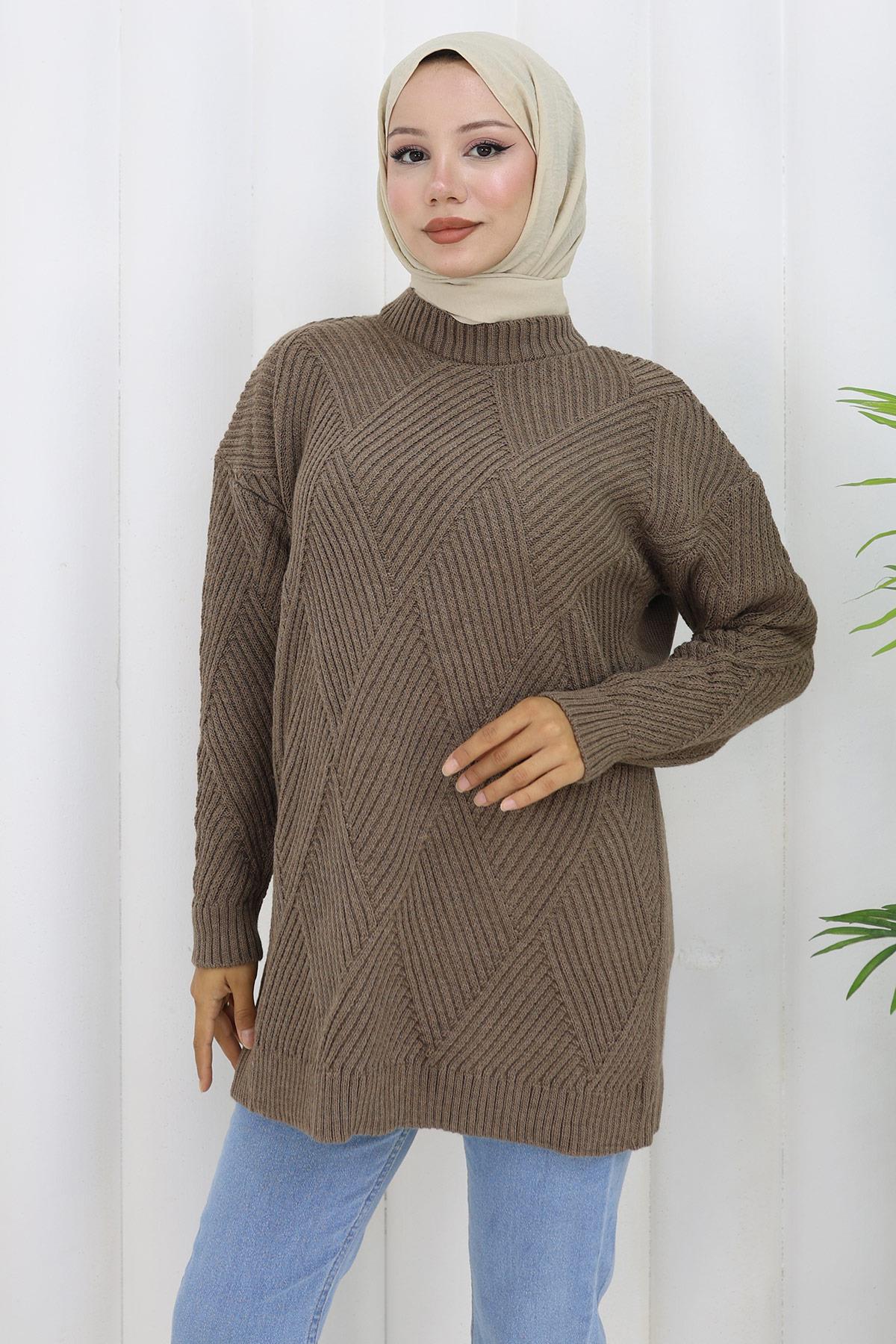 Bisiklet Yaka Baklava Desen Kazak Vizon HM2836 (2836)