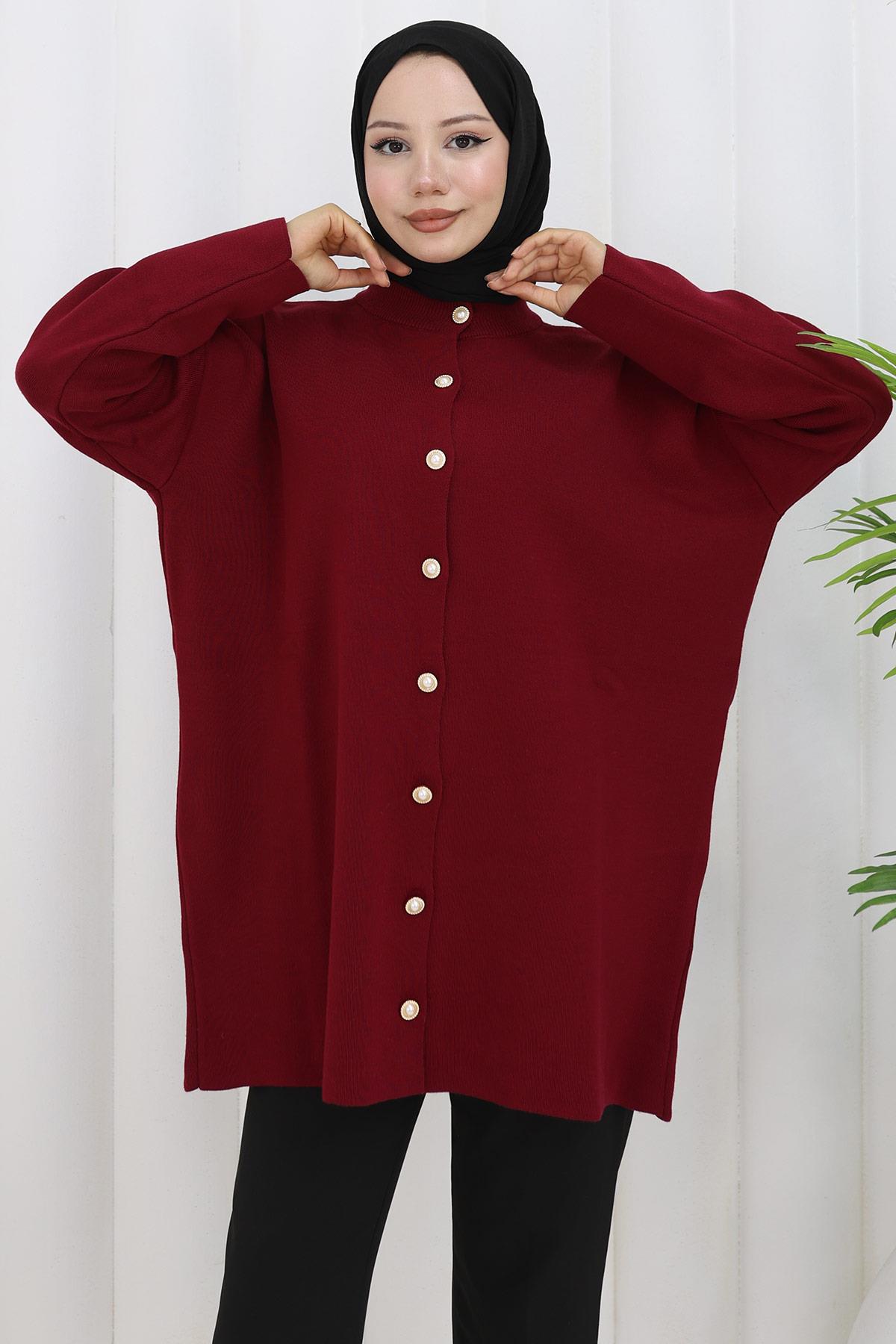 İnci Düğmeli Triko Hırka Bordo HM2834 (2834)