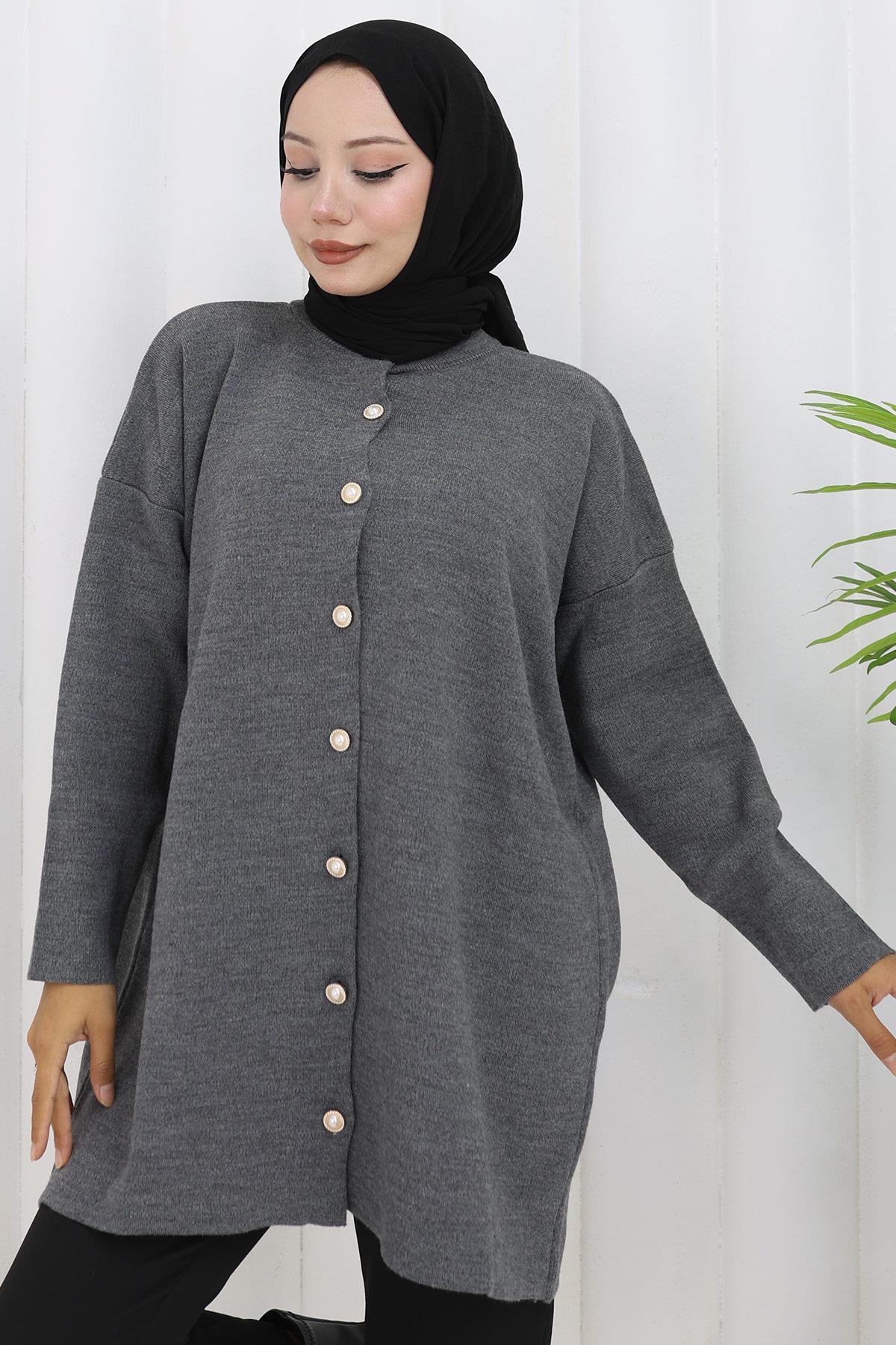 İnci Düğmeli Triko Hırka Füme HM2834 (2834)