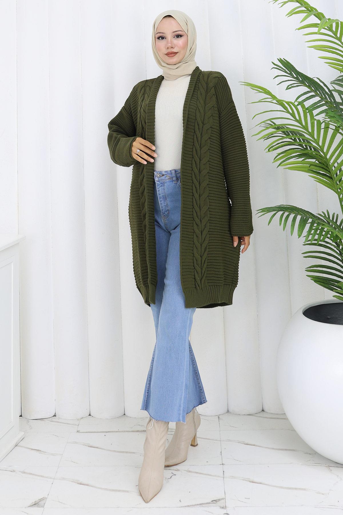 Örgü Desen Araboy Triko Hırka Haki HM2837 (2837)