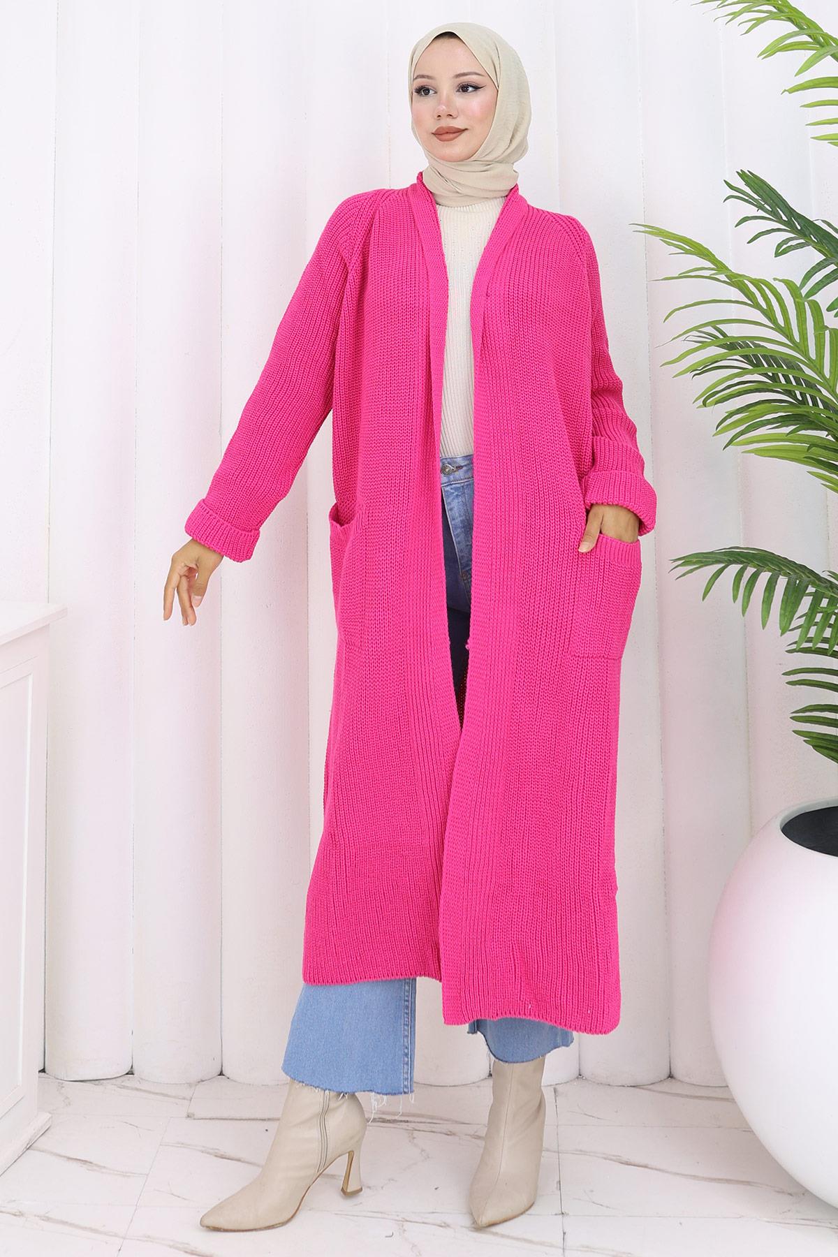 Şal Yaka Cepli Triko Hırka Fuşya HM2243