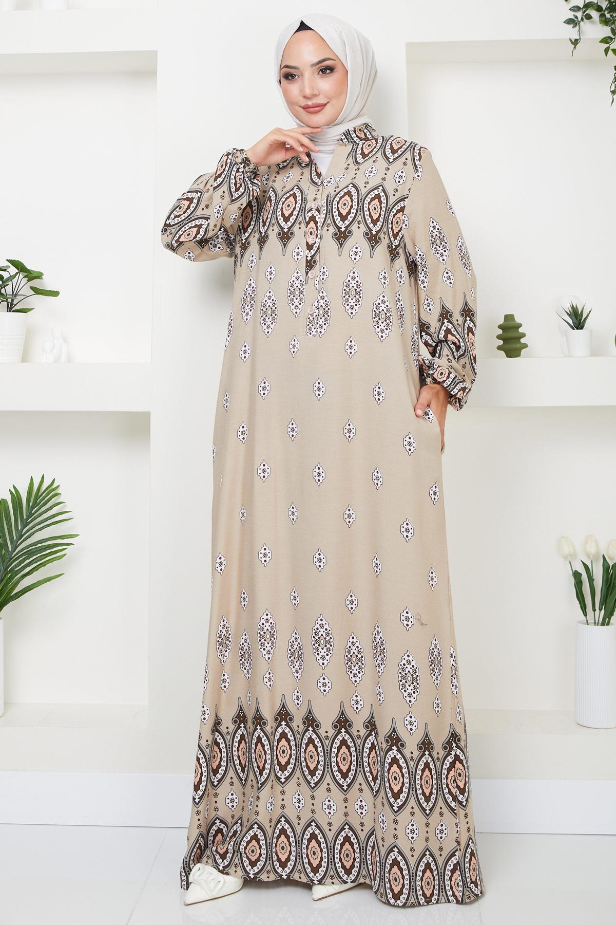 Kumaş Özelliği : Viskon kumaştan üretilmiştir. Ürün Özelliği : Bele kadar düğmeli desenli Viskon Elbise modelidir. Manşeti lastikli, önden düğmelidir. Hakim yaka, cepli, astarsızdır. Yazlık kullanım için uygundur. Makinede yıkanınca çekme yapabilir. Ürün renginde konsept çekimlerinden dolayı ton farklılığı olabilir.